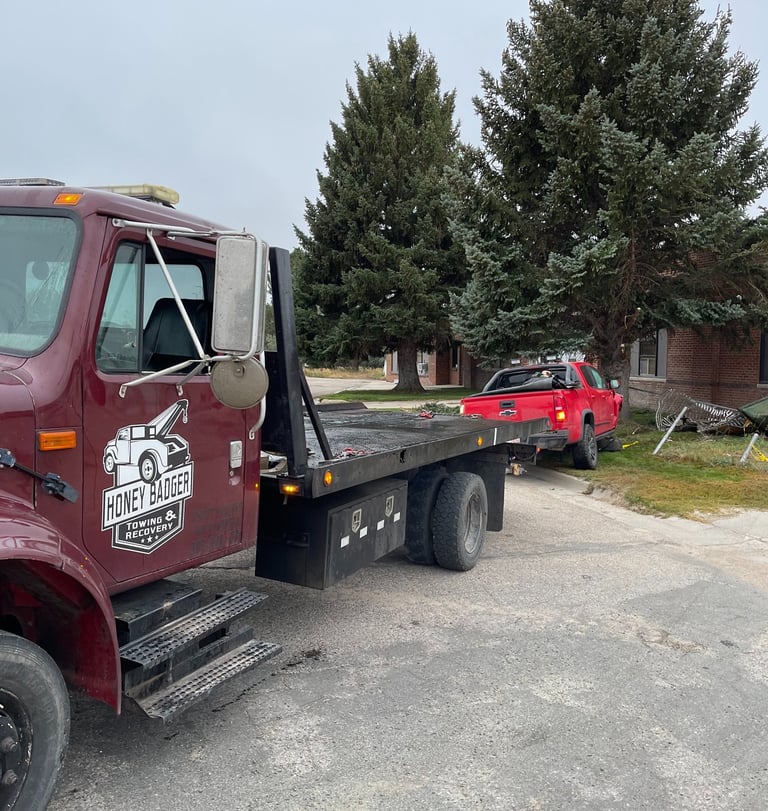 Honey Badger Towing and Recovery LLC. was founded in 2020 by Joseph Bleming, it is a privately owned and independently operated company located in Lusk, Wyoming. Honey Badger Towing does light, medium, and heavy towing, accident clean up, winch outs, and recovery. We also offer lockout services and roadside assistance. Honey Badger Towing and Recovery is a Veteran owned company and strives for excellent service and reasonable rates for all our customers.